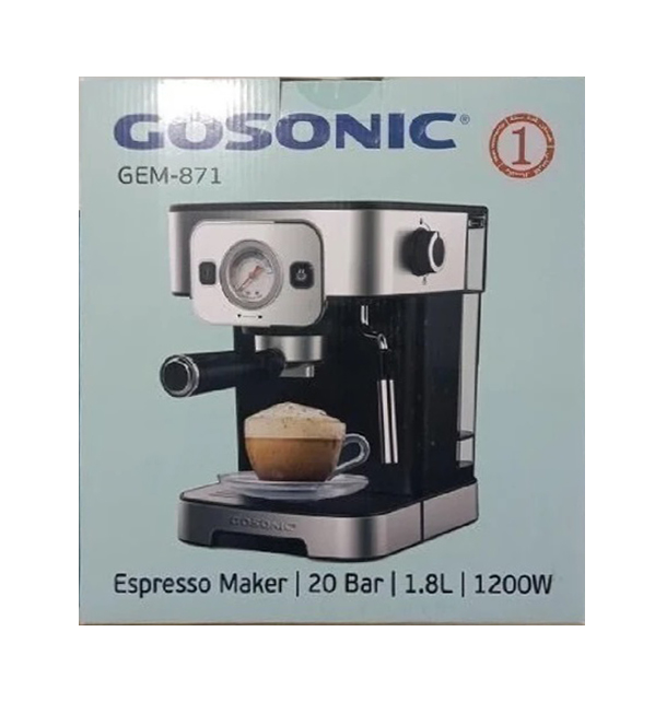 اسپرسوساز گوسونیک مدل GEM_871 دستگاهی کوچک و کارآمد است که با بهره گیری از توان 1200 وات، که به کمک قابلیت حالت آماده به کار می توان در کمترین زمان ممکن انواع قهوه های خوشمزه و معطری را آماده نمود. این دستگاه با داشتن فشار بخار 20 بار که با توجه به قابلیت و ولوم قابل تنظیم و مخصوص این عملکرد قادر به تولید کف شیر، کف خامه ای برای کاپوچینو ، کافه لاته ، موکا، ماکیاتو و ... خواهد بود. روش استفاده از دستگاه بسیار ساده بوده و با کنترل پنل دکمه ای و اهرم فشار بخار می توانید بر اساس نوع نوشیدنی و نیاز خود از آن استفاده نمایید.. با تنطیم دستی اسپرسوساز GOSONIC GEM 871 می توان بخار و شیر را با هم مخلوط و یک کف غنی خامه ای و یک دست برای نوشیدنی های دارای بافت یکنواخت درست کرد. این محصول دارای یک مخزن آب شفاف با قابلیت جداسازی می باشد.فیت این مخزن توانایی گنجایش 1.8 لیتر آب را داشته که در هر بار استفاده می تواند برای 10 تا 12 فنجان قهوه کافی باشد.اسپرسو ساز گوسونیک از جنس بدنه استیل ضد زنگ و پلاستیک با داشتن فیلتر های بسیار ریز و خروجی دوگانه ساخته شده است.