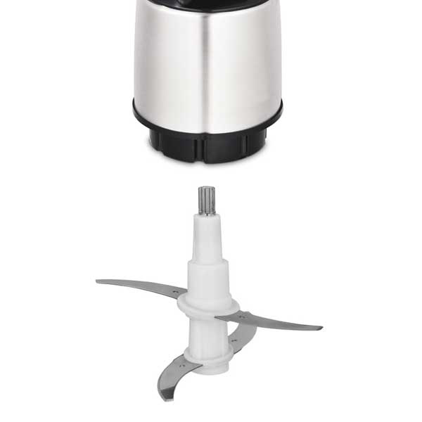 چناچه بنا به دلایلی مانند کمبود فضا قادر به تهیه غذا ساز نیستید، می توانید این خردکن چند منظوره و پر کاربرد را استفاده و آن را برای هم زدن و یا خرد کردن به کار برید. این محصول در مدت کم و با کیفیت بالا عمل خرد کردن و آسیاب نمودن انواع مواد غذایی را انجام می دهد. مخزن آن 3.3 لیتر گنجایش داشته و از شیشه پیرکس مقاوم ساخته شده است و به مرور زمان زرد نمی شود. جنس درپوش هم پلاستیکی است. شما در هنگام فعالیت دستگاه می توانید مواد در حال خرد شدن را مشاهده کنید. بخش بالایی(مشتمل بر موتور و ...) از جنس استیل است و نمای براقی دارد. تیغه این خردکن چهار پره دارد(دو ردیف دو پره در بالا و پایین) و از استیل مقاوم با روکش تیتانیومی ساخته شده است و در برابر فشار، دما و رطوبت مقاومت بسیار بالایی از خود نشان می دهد. این محصول طول عمر طولانی دارد چون بخشهای داخلی موتور، گیربکس و اتصالات آن تماما از فلز ساخته شده و استهلاک بسیار پایینی دارند. به دلیل مخزن بزرگ و تیغه ها و اتصالات محکم، موتوری قدرتمند با توان 1800 وات برای این محصول در نظر گرفته اند. طراحی این موتور به گونه ای انجام شده که هنگام کار کمترین صدا و لرزش را ایجاد کند. سرعت موتور در دو سطح قابل تنظیم است. انتخاب سرعت به کمک دو دکمه واقع بر بالای بدنه امکان پذیر شده است. دکمه ها عملکرد فشاری دارند. به عبارتی تا زمانی که بر آنها فشار وارد کنید دستگاه روشن بوده و عمل خواهد کرد.