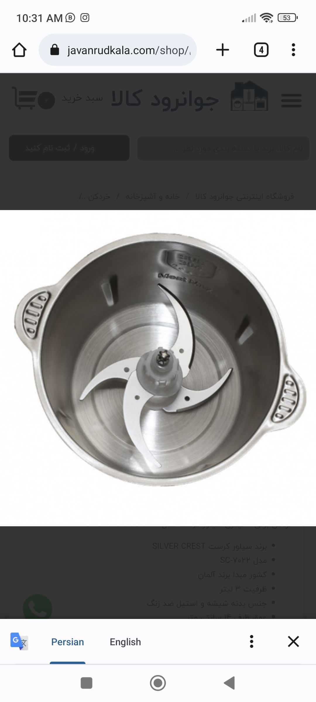 تعداد تیغه: ۴ عدد تیغه استیل ضد زنگ و فوق العاده تیز