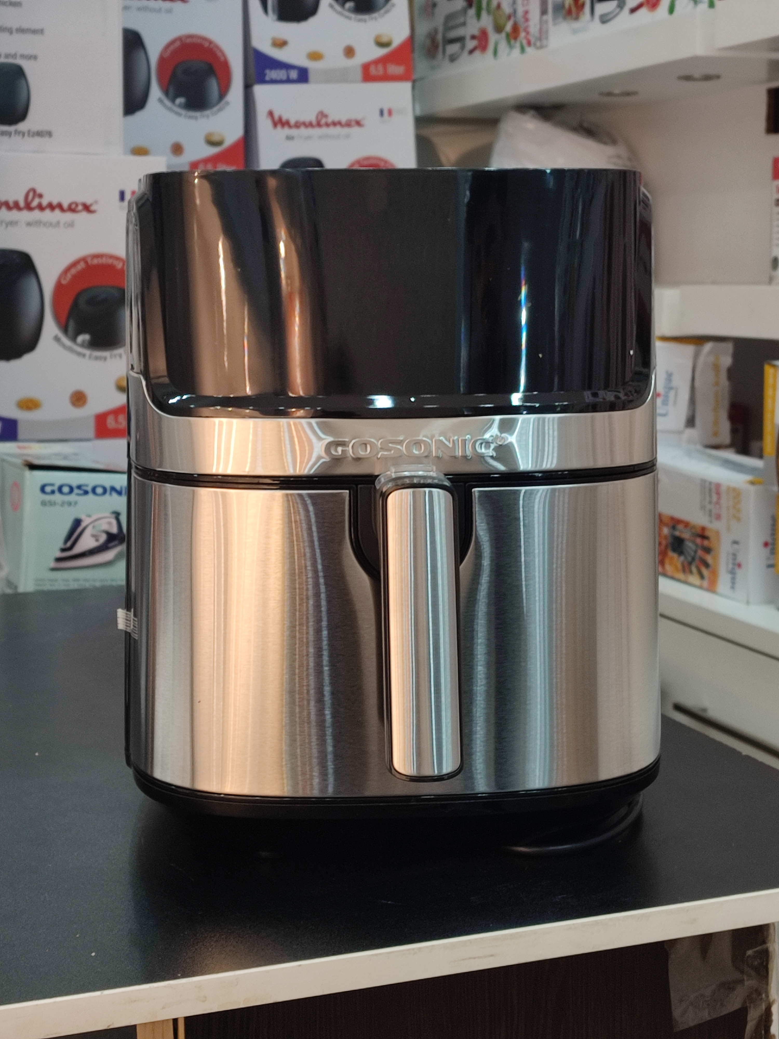بالاخره بعد از مدتها انتظار شرکت گوسونیک با ورود به سال ۲۰۲۳ از سرخ کن های بی روغن خود رونمایی کرد. سرخکن گوسونیک یک دستگاه رژیمی بی نظیره و به میزان ۸۰ درصد در مصرف روغن صرفهجویی میکند. این محصول از توان ۱۷۰۰ وات بهرهمیگیرد که قدرت زیاد و عملکردی بالا را برای آن به همراه دارد. گنجایش ظرفیت دستگاه معادل ۶٫۵ لیتر است این میزان از حجم بسیار مناسب و استاندارد است و برای مصارف خانگی مطلوب خواهد بود. پیاده سازی و طراحی سرخ کن به گونه ای است که دیگ و سبد دستگاه بصورت کشویی از جلو باز می شود و قابلیت شستشو در ماشین ظرفشویی را دارد. سرخ کن رژیمی گوسونیک ۷۵۵ دارای یک رنگ ثابت نقره ای مشکی است و رنگ بندی دیگری ندارد. نکته قابل توجه دستگیره جلو سرخکن است کنه تنها با فشار دکمه ای برای خنک ماندن ، بر راحتی از دستگاه جدا می شود.