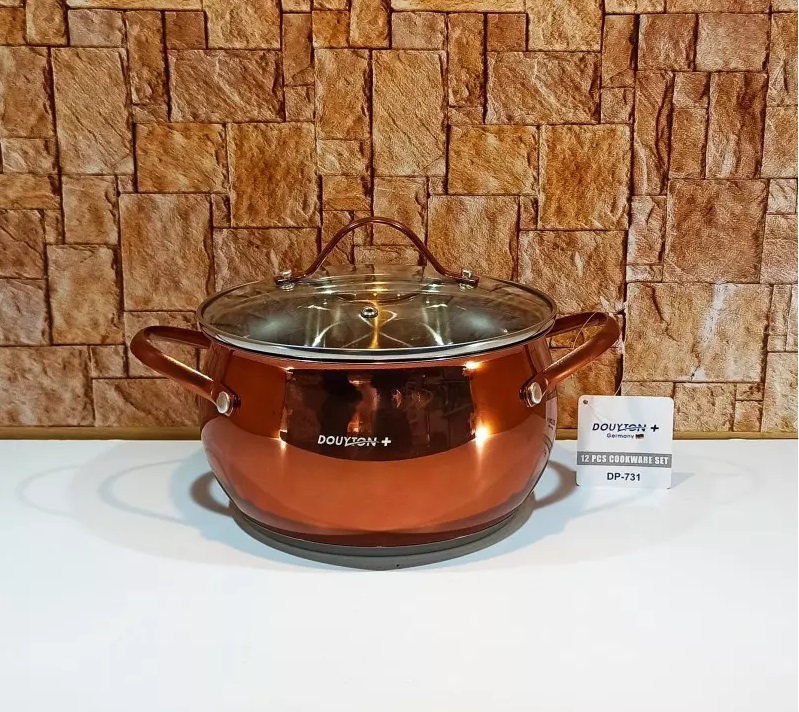 بهترین سرویس پخت و پز شرکت دایتون پلاس بدون شک همین مدل ۱۲ پارچه مسی این شرکت است. محصولی که از هر جهت نیاز شما را فراهم می کند. استیل از نوع ۱۸٫۱۰ می باشد و بسیار بسیار مرغوب می باشد. روکش بیرونی از نوع کروم می باشد (دارای ۱۸ درصد کروم) که شفافیت بسیار زیادی دارد. نیکول به کار رفته نیز ۲۳ درصد می باشد, همین امر به جذابیت آن افزایده . جهت حرارت هر چه بهتر از کفه چدن سه لایه در بخش زیرین آن استفاده شده است.(یک لایه استیل و دو لایه چدن). سرویس قابلمه ۱۲ پارچه استیل دایتون پلاس یکی از بهترین انتخاب ها برای آشپزخانه شماست.