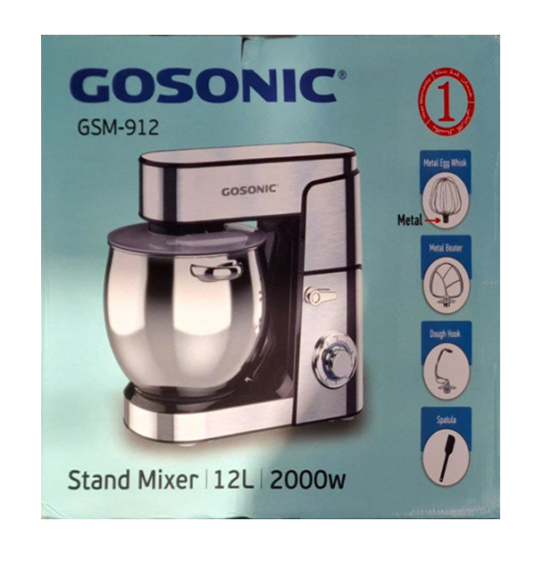 همزن گوسونیک مدل GSM-912 دارای قدرت 2000 واتی است و برای آن 6 سرعت مختلف تعبیه شده است که بنا به سختی ماده و نوع سری که از آن استفاده میکنید، میتواند متفاوت باشد. در کنار این تنظیمات سرعت، عملکرد پالس (لحظه ای) نیز وجود دارد که تمام این ها با استفاده از کلید ولومی مکانیکی تعبیه شده بر روی دستگاه قابل انتخاب می باشد. این محصول دارای کاسه 12 لیتری است که جنس آن از استیل ضدزنگ می باشد. همراه با این همزن، سه سری مختلف ارائه می شود که شامل سری همزن، خمیر زن و سری ورز دهنده می باشد. که استفاده از هر کدام بنا به نوع ماده ای که قصد مخلوط کردن آن را دارید میتواند مورد استفاده قرار گیرد. این سری ها فلزی هستند و با توجه به فاصله ای که از کاسه دارند، موقع استفاده از آن ها، به کاسه آسیبی وارد نمیکنند و با کمترین فاصله شروع به کار میکند. در نهایت باید این ویژگی مهم را یاداور شد که این همزن دارای درپوش می باشد که بر روی این درپوش، دریچه ای قرار گرفته شده که علاوه بر اینکه از پاشیدن مواد به خارج از کاسه جلوگیری میکند میتوانید مخلوط شدن مواد را ببینید و هر موقع که خواستین مواد به داخل آن اضافه کنید.