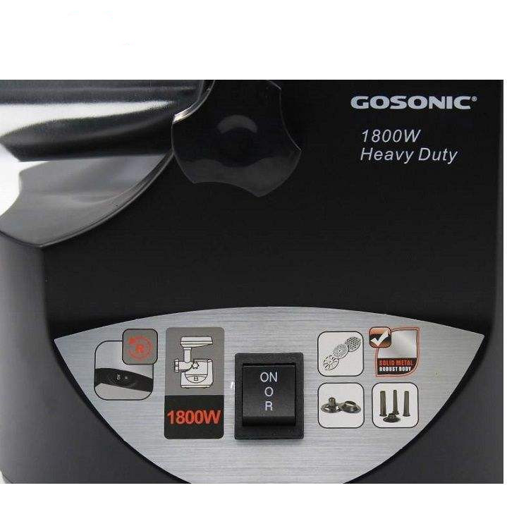 چرخ گوشت گوسونیک مدل GMG-744 از سری محصولات با کیفیت منزل و آشپزخانه می باشد. این محصول دارای توان مصرفی ۱۸۰۰ وات می باشد. جنس بدنه از ترکیب پلاستیک و آلومینیوم که علاوه بر استحکام، زیبایی خاصی را به این محصول بخشیده است. دکمه خاموش و روشن و دکمه دور معکوس برای این محصول درنظر گرفته شده است. دارای یک سینی استیل محافظ در برابر گرد و غبار مجهز است و جنس سری چرخ کننده فلزی می باشد. این محصول با ۳ مدل تیغه برش معمولی، سری سوسیس ساز و سری ریز عرضه می شود و دارای دستهی فشار دهنده جهت امنیت هنگام کار با آن می باشد.